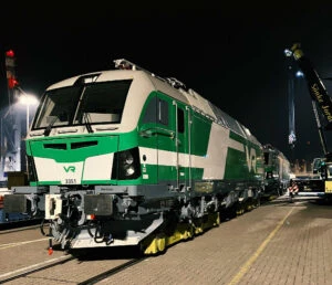 The locomotives traveled “on their own axles” from the Bavarian plant in Munich to the Seelandkai terminal, where they were prepared for sea transport to Hanko, Finland by Transfennica’s ferry service.