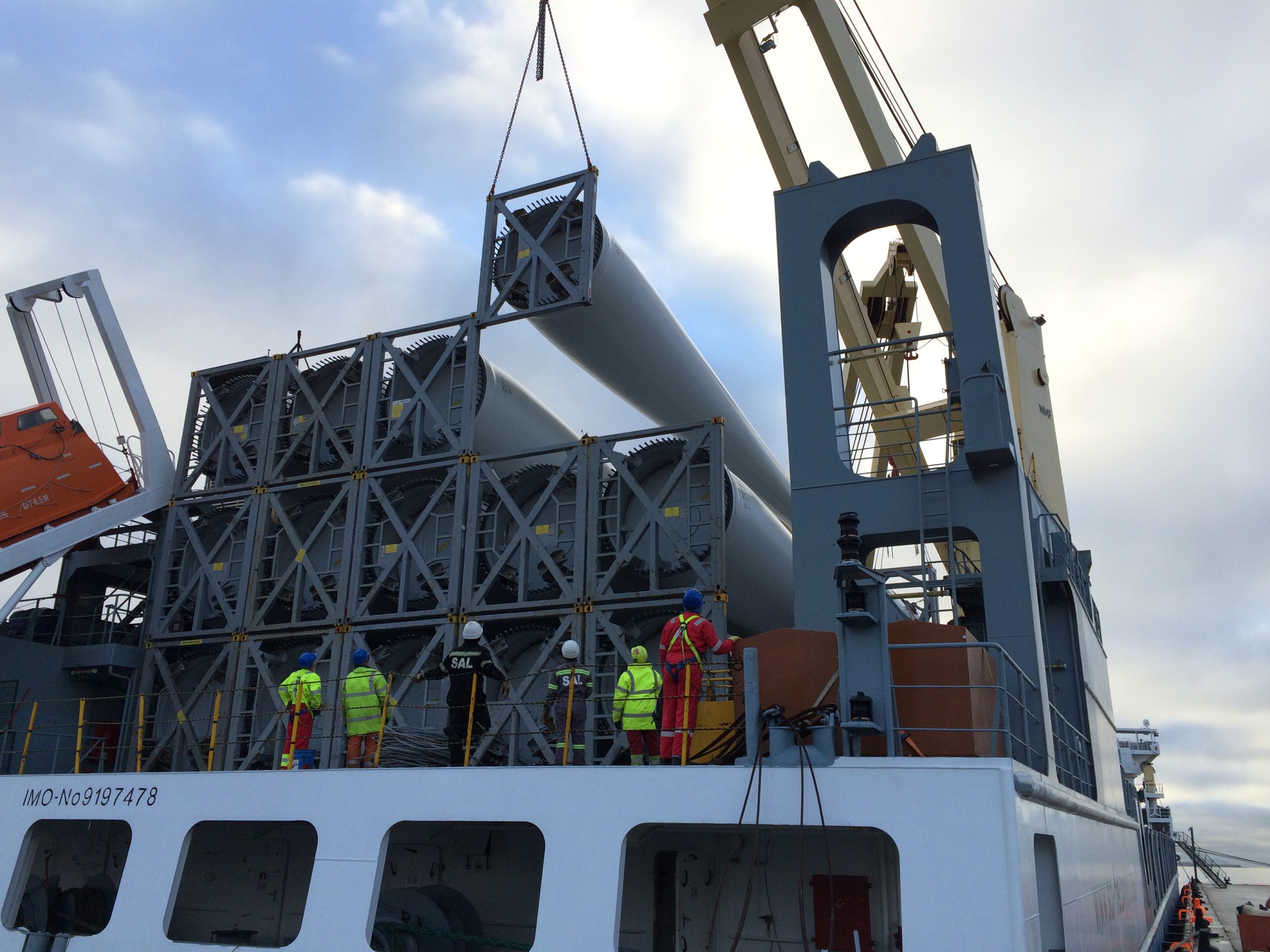 All 18 blades and 6 towers are now in storage in port area and will soon be uplifted to wind farm site located the northwest of Ireland.