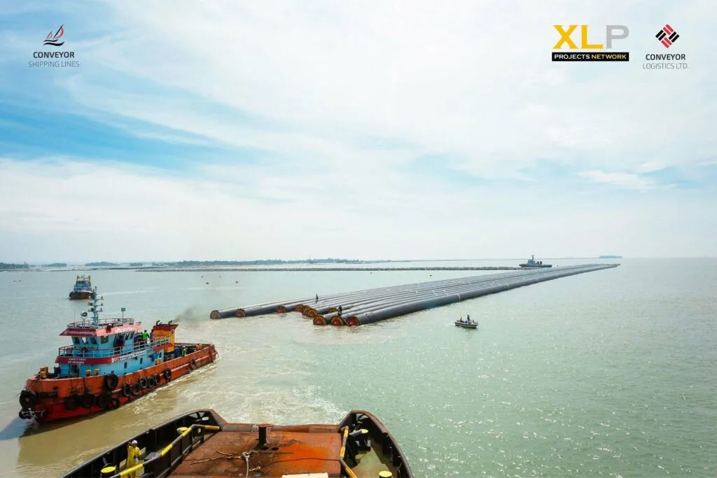 The pipe-strings were towed by a Tow-Barge on a 16,300 km voyage from Stathelle in Southern Norway to a Power Plant Project site in southern Bangladesh. Conveyor Logistics Limited is proud to have been associated with and handling this transportation of pipes by a unique floatation method first-ever adopted for a long-haul transportation of large diameter pipes. This is a new milestone achievement for Conveyor Logistics Limited.