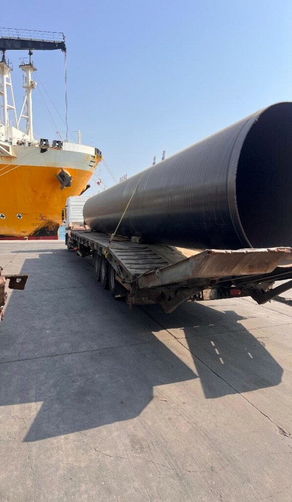 The Carbon Steel Pipe Project involved the meticulous management and transportation of 156 carbon steel pipes, each measuring 16 meters in length, with a total weight of 1259.8 MT. The project required not only logistical precision but also a keen understanding of the complexities involved in handling such large and heavy materials.