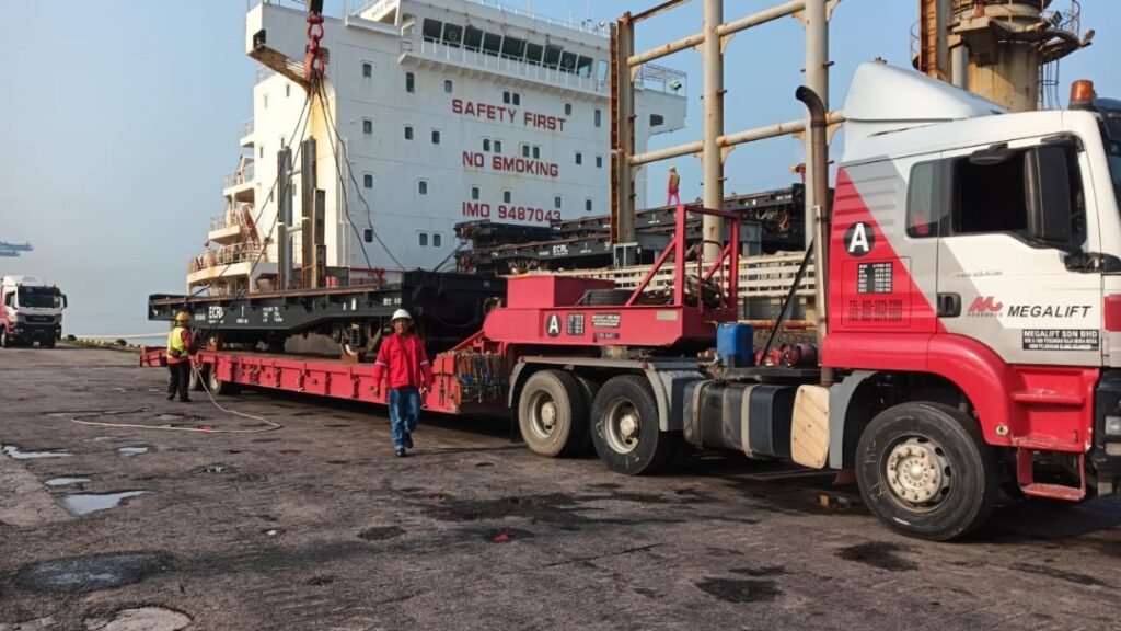 This month, the Megalift team and equipment are occupied with the handling of shipments for East Coast Rail Link (ECRL) project. They have 6 units of locomotives entering via Kuantan Port and 95 units of wagons that arrived in Port Klang, both via conventional vessels. Their team and equipment have been mobilised to receive the cargoes and deliver them in batches to Kuantan for the installation to take place.